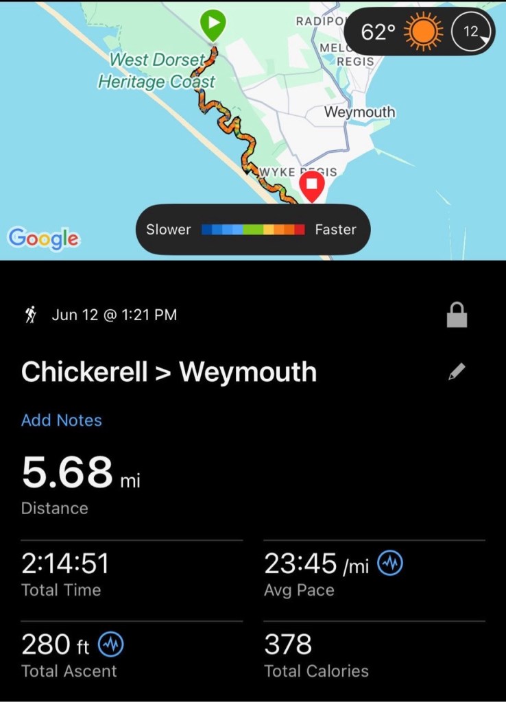 Another Yellow Weather Warning day. Since I only have a short day planned I had a lie in (till 7am!), then moseyed around Weymouth for a bit. I then caught the 11:08a bus back to Abbotsbury for lunch and another mosey as I didn’t actually go into the village yesterday. After lunch, a quick bus ride to Chickerell to commence walking back to Weymouth. The rain was to end early afternoon….