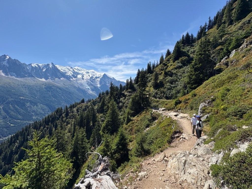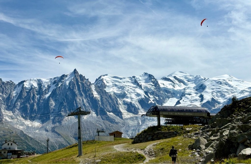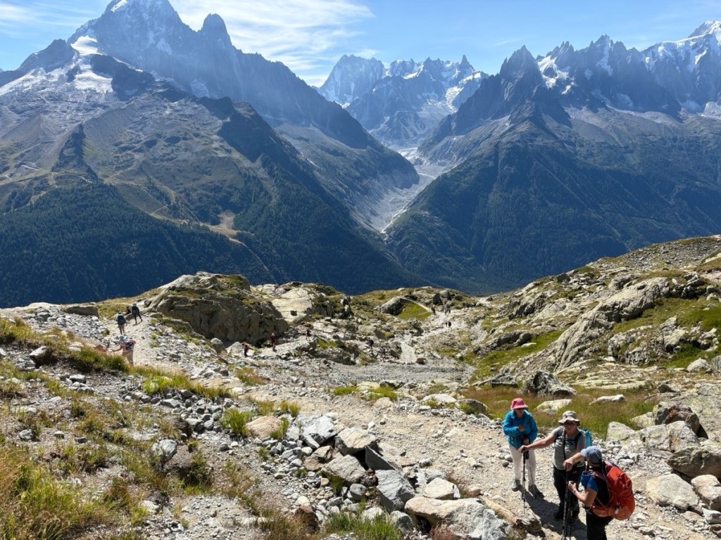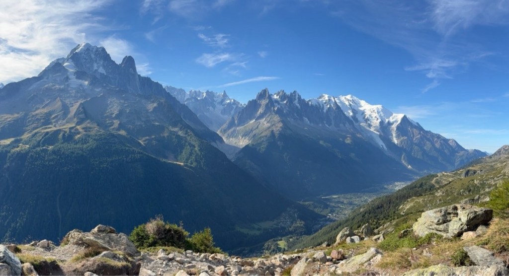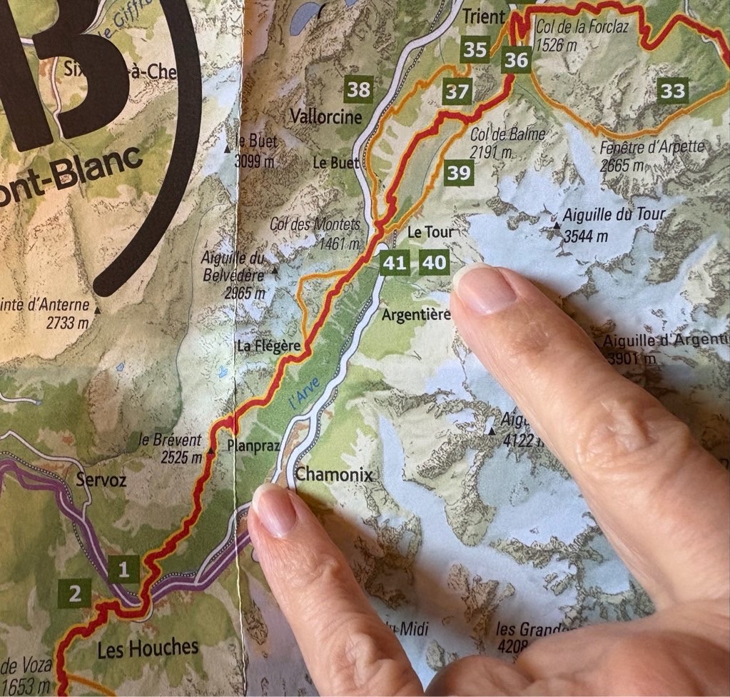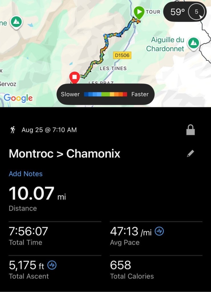 I finished at the PlanPraz cablecar which whisked me down to the middle of Chamonix in no time flat. And the place was buzzing with people. This is the Ultra TMB week with trail running races at towns all along the route. A 50 km race was finishing when I arrived with music, clapping, and the announcer welcoming each runner home. Very festive. I’ve a day off tomorrow so I’ll explore more then.