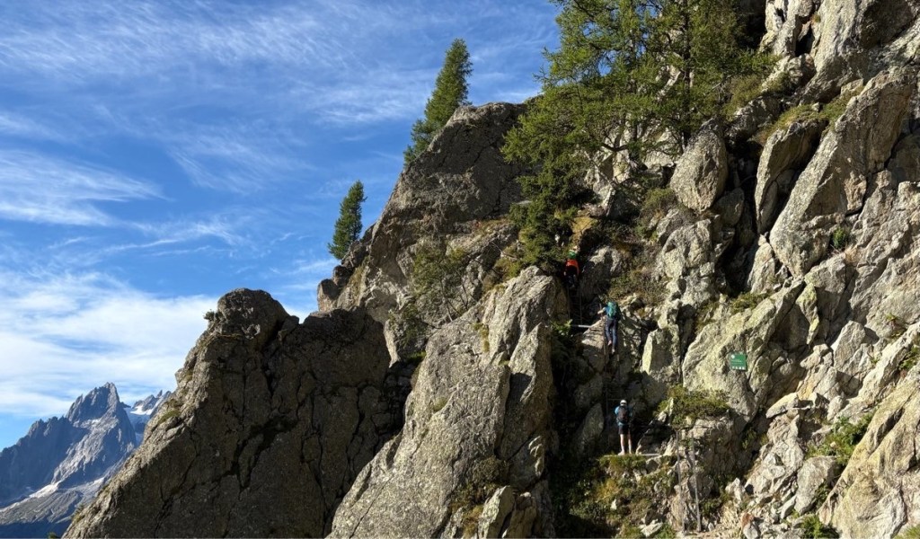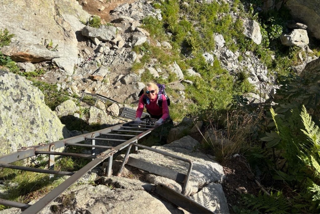 The TMB here is also called the Grand Balcony Sud and true to its name it traverses the side of the mountain however without a much needed railing! It was generally quite a narrow path with a sheer drop and full of stumbly tree roots, large stones, rock slides, and a vertical stairway thrown in for good measure. I must admit it was a bit of a struggle. I mistakenly expected it to be fairly level but it had sharp little ups & downs with a big climb at the end.