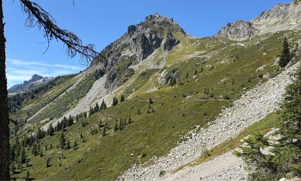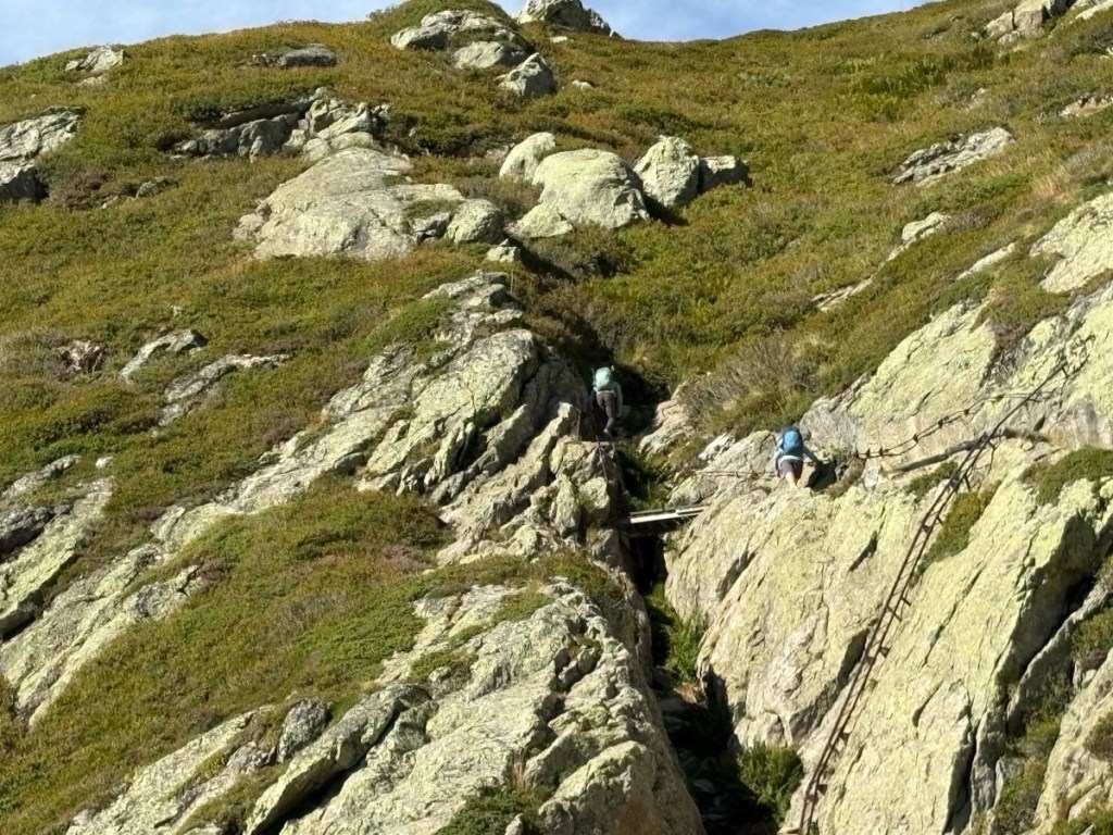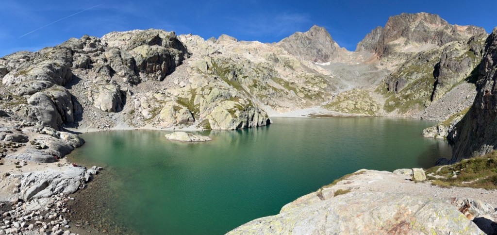 Another famous bit of the TMB is the variant to Lac Blanc, so says my guidebook. It’s an additional 45min & 300 meters up in just under a mile however most of the elevation was in steep steps, ladders or boulders! Astonishingly I was exactly on the pace my book suggested, so I must have crushed the start because I was literally stopping every few stairs at the end 🙂