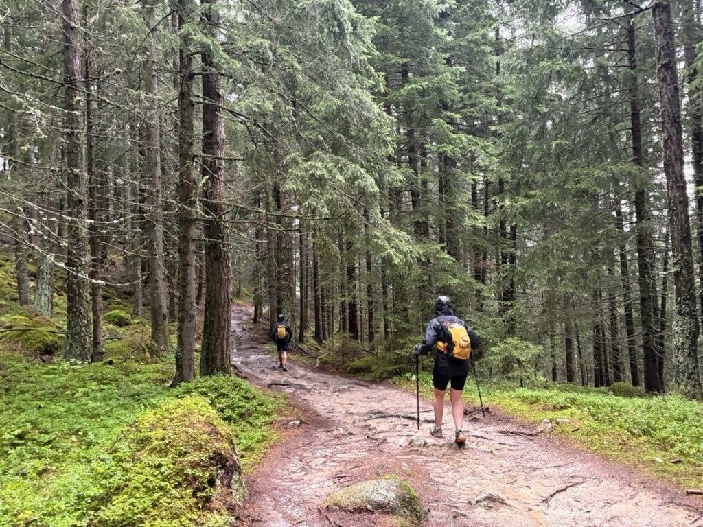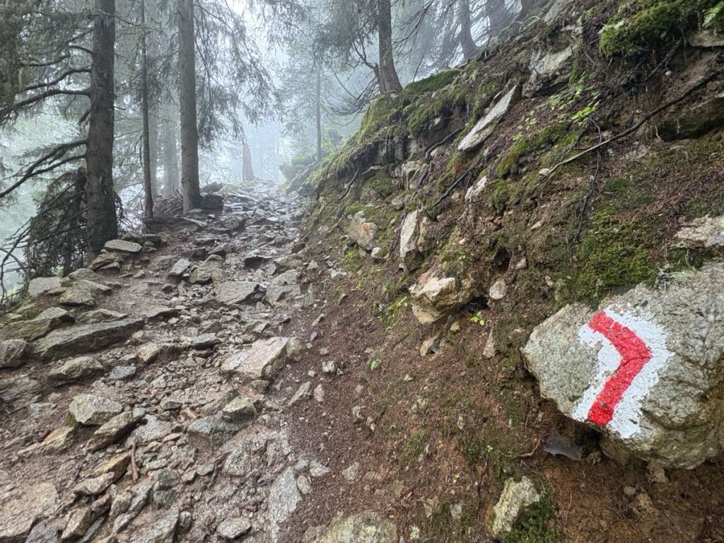 I knew I wasn’t off to a good start this morning when I looked out my balcony and I was in the clouds…. It stayed dry until I was just past town, then it started steadily raining for a good hour & a half, then it alternated between a heavy mist and drizzle for the rest of the hike.