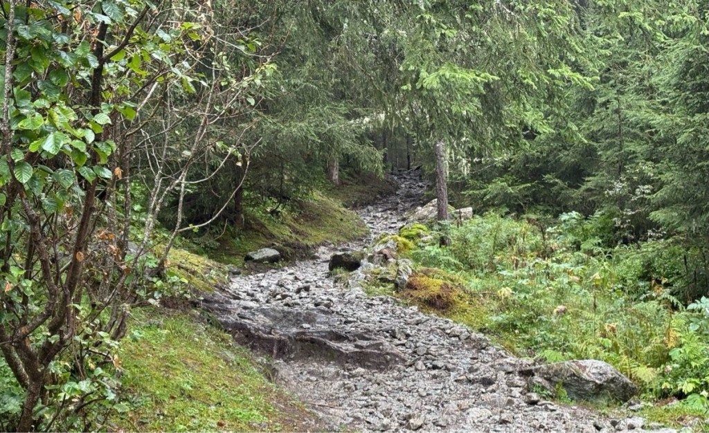 The first 4 miles were on road or forest track, which was easy walking. Good thing as I had to make time today to catch the 12:54pm bus to Martigny as the next one wasn’t until 6pm! I skipped breakfast and set out at 7:05am which should give me time enough if I didn’t dawdle. My book said ~5 hours but I read accounts of people taking 6-8 hours!