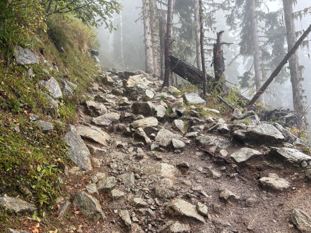 Last Day on the TMB! And what a day it was. I guess Mother Nature didn’t want me to miss out on any experiences so she threw me a day of rain, mist, rocks and mud.