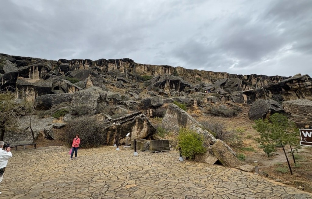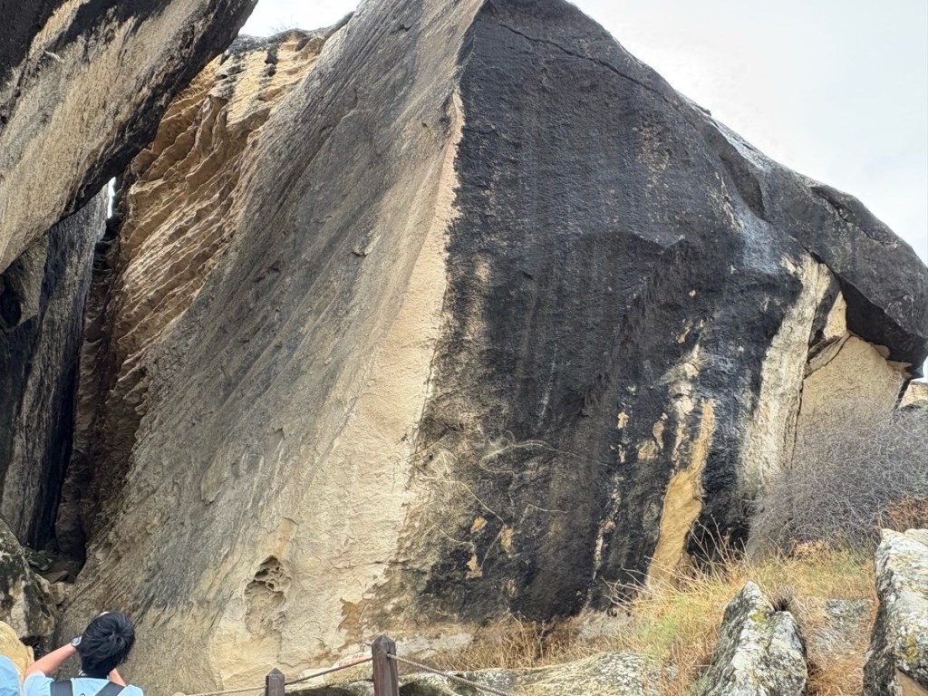 First was a hours bus ride south to view ancient, as in 30,000 – 6,000 year old petroglyphs at a reserve called Qobustan. 50,000 years ago this area was a lush savanna teeming with animals, and therefore hunters. For some unknown reason the ancient peoples declared these hills a sacred site and for millennia carved images into the soft sandstone rock. There’s no evidence of any habitation so it must have been purely ceremonial…