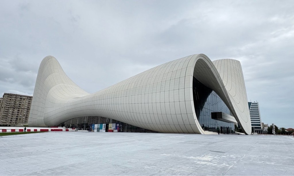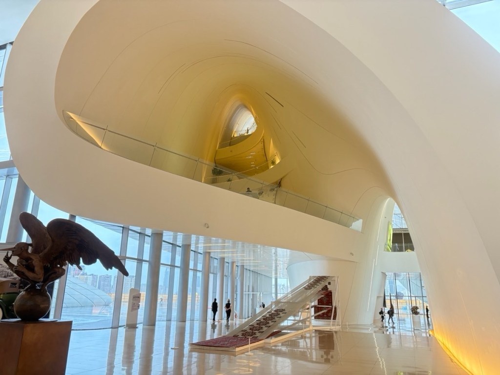 After lunch we had indoor activities. First was the famous Zaha Hadid–designed Heydar Aliyev Center and museum. The exhibits were small; the real attraction was the building!
