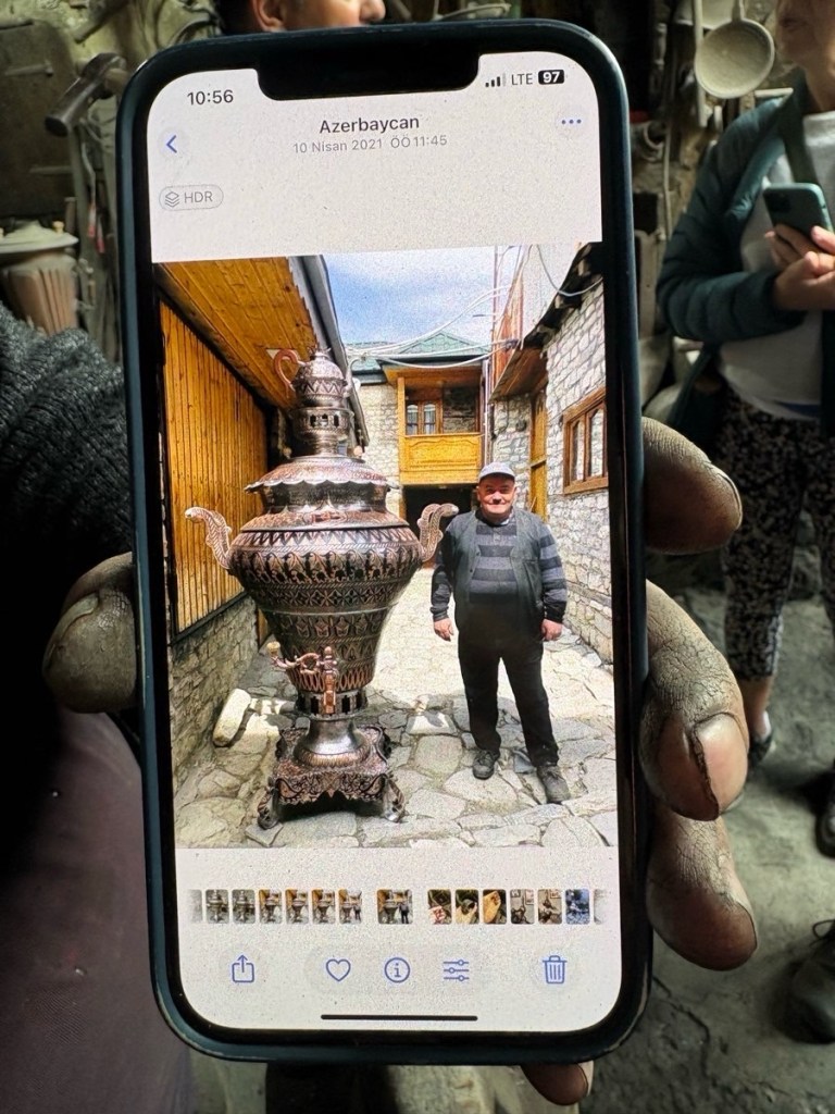 We started with a walk around Lahji – this mountain town that we drove in the dark to get to last night. It’s a summer retreat for Bakuvians when the heat in the city gets too extreme as well as being famed for its copper work. This, of course, is a dying art form, but there’s still one or two artisans left.