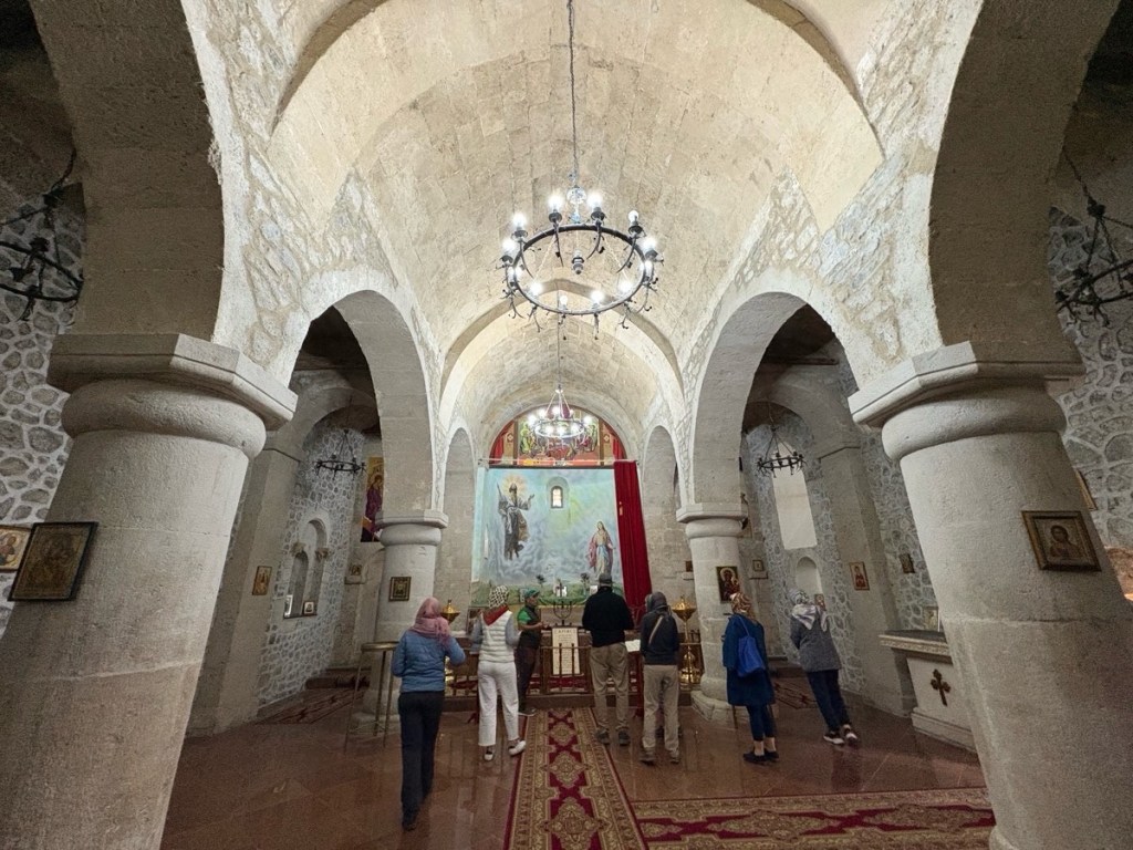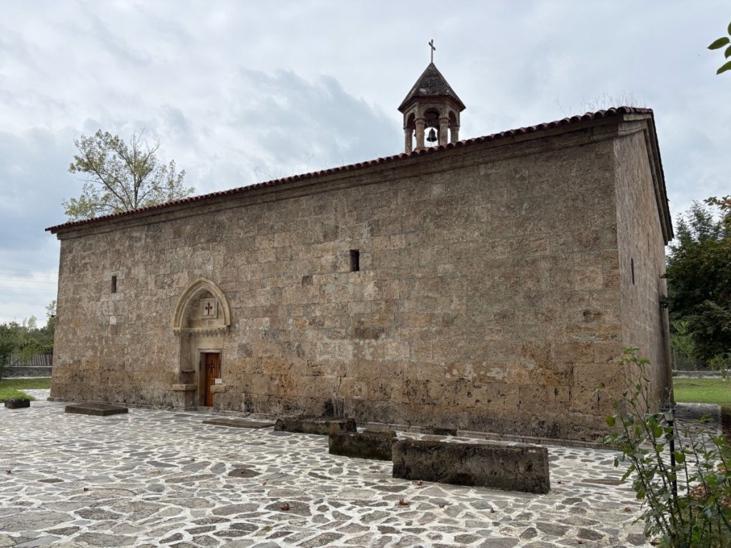 Our last stop before Sheki was to visit a 10th C. Christian church. Between the 4th-10th C. Christianity was the official & upper class religion until the Arab domination brought Islam to Azerbaijan. The little village of Nic is unique in that it resisted conversion and remains to this day an Eastern Orthodox village, preserving their old Udi language and heritage. During the Soviet era it was used as a storehouse (all religion was banned) but the new Azerbaijani government has made it a point to be more accepting of other faiths/peoples and paid for its restoration.