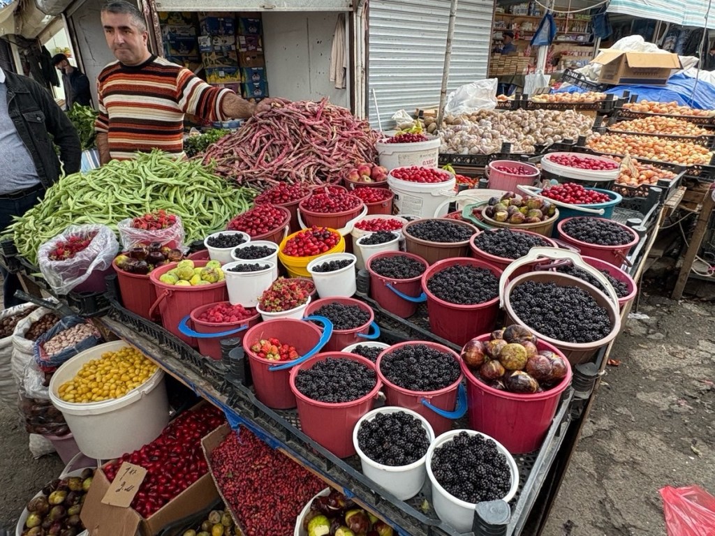 A half day of lite touring today, with free time offered in the afternoon. First off we visited the local bazaar which sold vast quantities of fine-looking, freshly picked produce as well as meats and entrails, economical clothing, and cheap household goods.