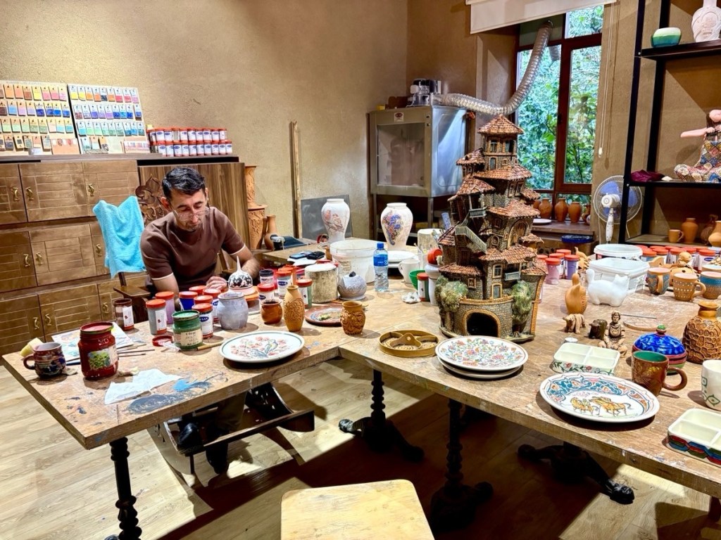 On the palace grounds there’s artisan studios with a ceramic workshop, a wooden screen workshop, even an art hotel. The creative space & all materials are provided free by the government to promote local artisans and encourage them to stay in Sheki rather than move to the big city.