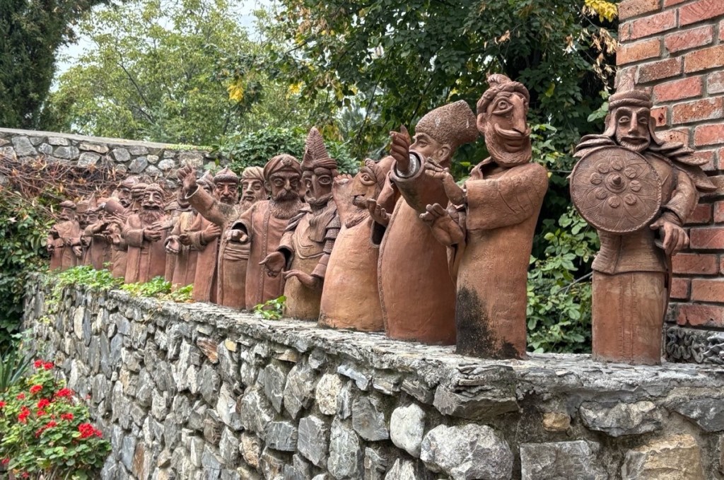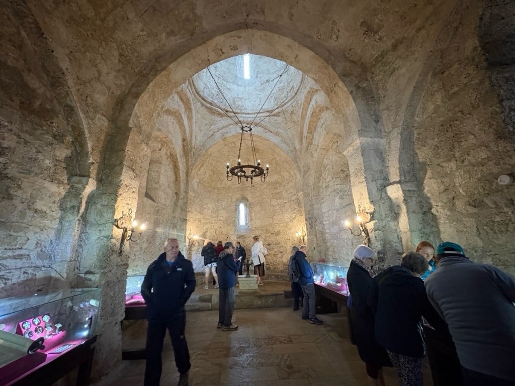 Lastly, a trip up the misty hill to visit the oldest Alban church in the Caucasus (1stC, with the tower added in the 5thC) in Kiş. Thor Heyerdahl, of Kon Tiki fame, conducted archeological research here in 2000-2003 and discovered remains under the church of pagan era burials and artifacts.