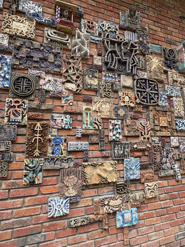 We had a master give us a quick demonstration of the mosaic screenwork. It all slots together like a jigsaw puzzle without glue or solder. We tried our hand with the little square boxes on the table but it’s quite challenging getting the correct pieces in the right way. Of the 3 teams trying Lisa and I lost by a long shot. The screen on the wall behind the master has about 3000 pieces!