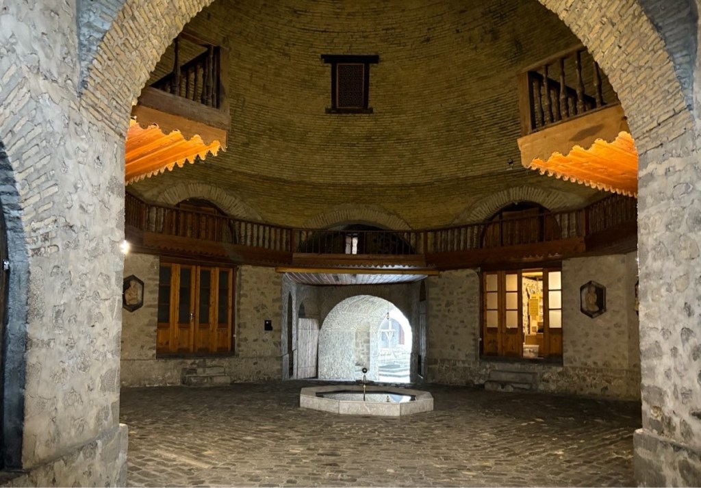 Afterwards we walked down in the now pouring rain to an old 18-19th C. Silk Road caravanserai that has been renovated into a hotel. They wouldn’t let us in as it had been rented out by a film company but we had a peak thru the little front door to just see the entrance courtyard so back to Google for an interior shot.