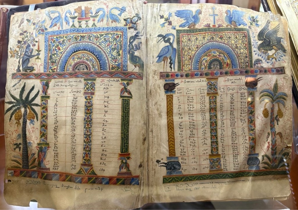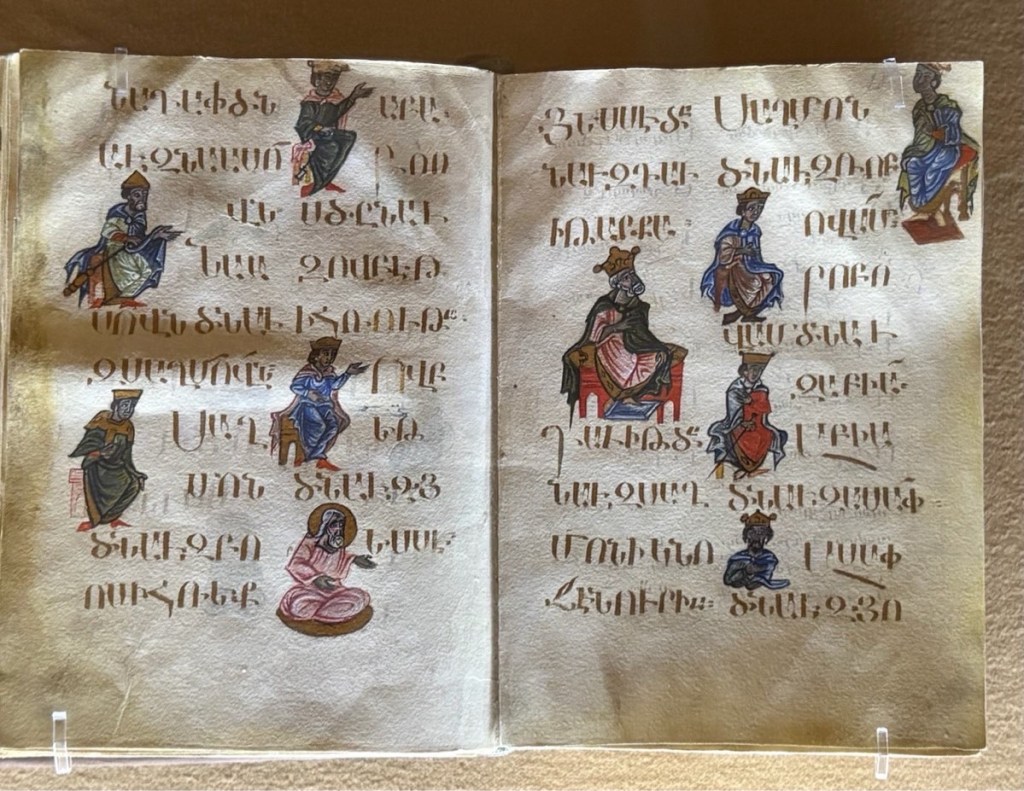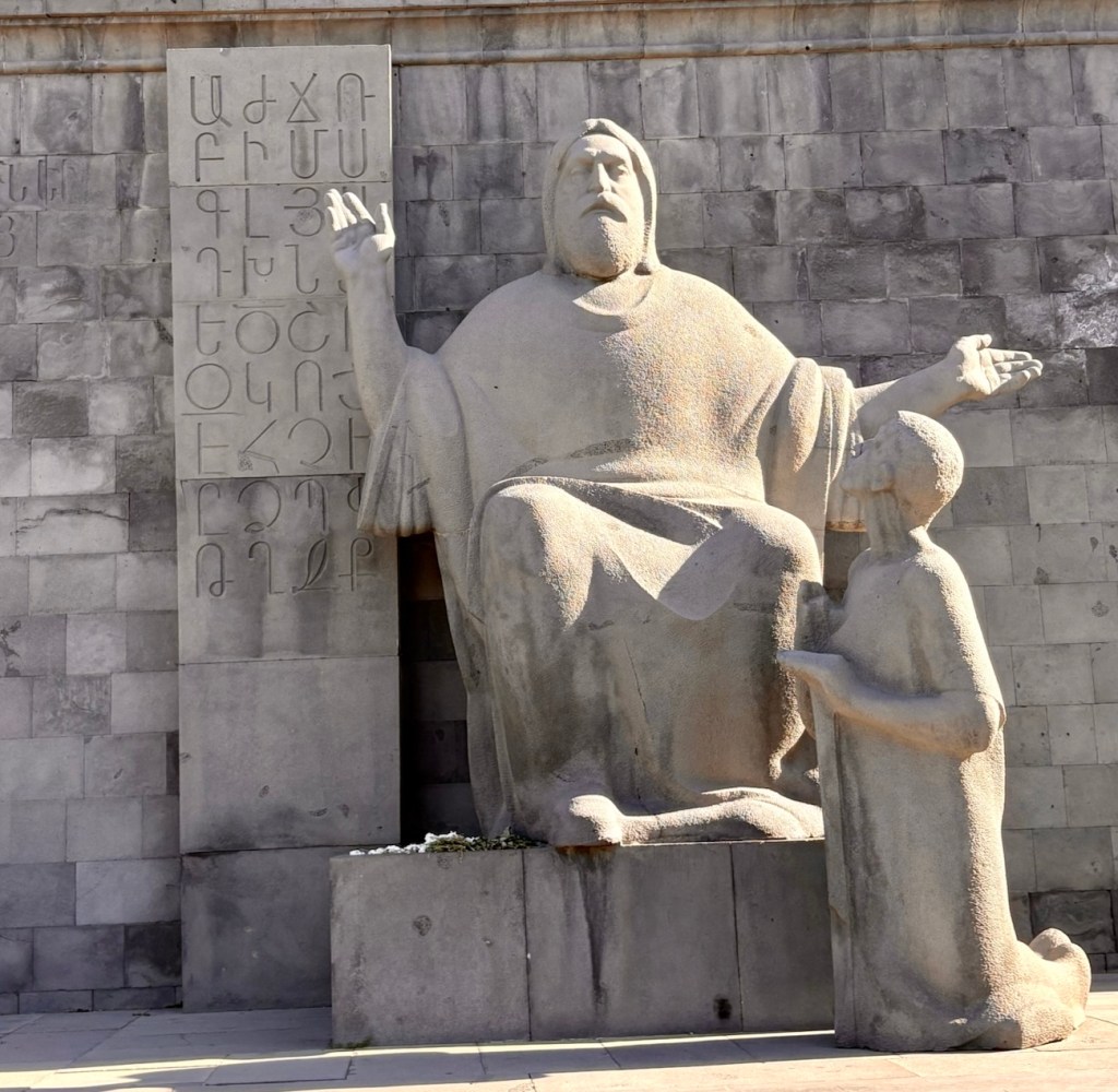 Next we visited the Matenadaran Manuscript Museum. Armenia is very proud of its literary heritage and has collected over 20,000 manuscripts plus countless documents, most kept in deep, climate-controled storage, with over 100 scientists studying them. Not long after Armenia adopted Christianity back in 301AD strong influences from both the Ottomans and the Roman Empire threatened to fracture the country so they decided developing their own alphabet to match their language would unify the sides with a national identity. In 405 a single scholar created their alphabet of 36 letters, one for each sound in their language, and he did such a meticulous job it survives today (+3 more letters).