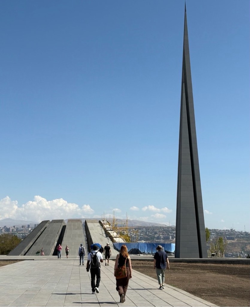 Our last official sight before lunch was the Armenian Genocide Memorial. Yerevan’s Tsitsernakaberd Memorial complex is dedicated to the memory of the 1.5 million Armenians who perished in the first genocide of the 20th century at the hands of the Turkish government. Completed in 1967, the Genocide Monument has since become an integral part of Yerevan’s architecture and a pilgrimage site.