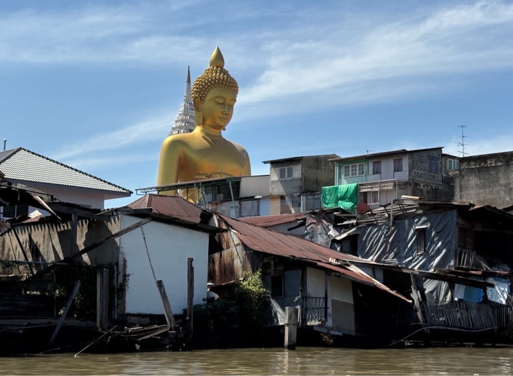 There were plenty of modern buildings interspersed with the old, lots of temples (600 in the city!), even a humongous gold buddha, appropriately named Big Buddha. We stopped at an artist colony/tourist shops created out of a row of old wooden shacks for a looksee, then powered our way back to the big city.