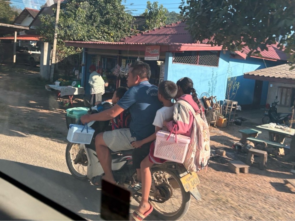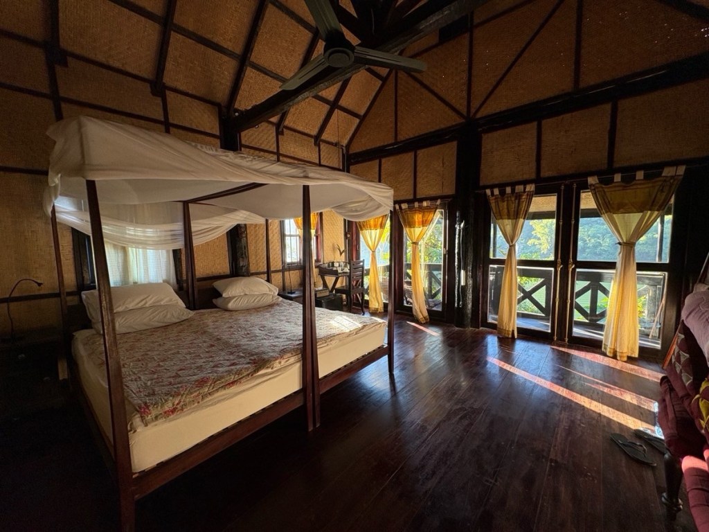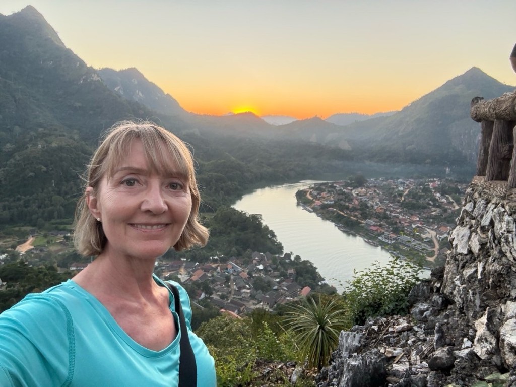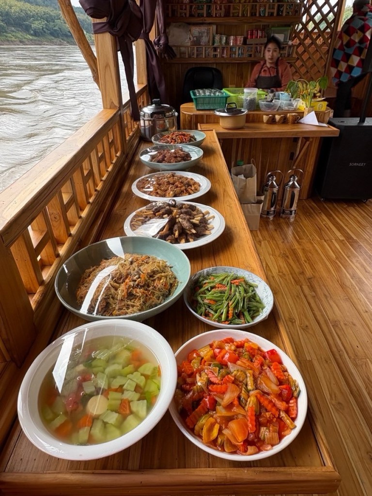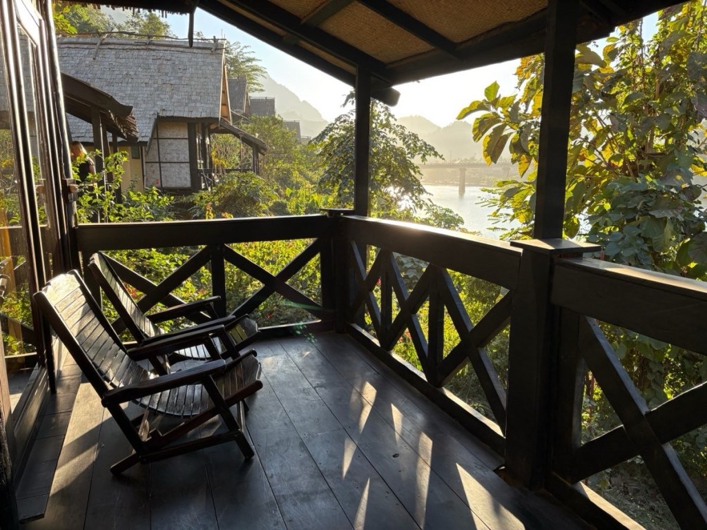 Our destination was Nong Khiaw. I’m afraid I know nothing about the town other than it appears to be a popular backpackers destination. We dropped our bags in our rooms and had 40 minutes to refresh ourselves before tackling the Sunset Hill hike located right behind the hotel. The guide said 30-40 minutes for ~400m as it’s pretty much a stair stepper carved out of the red dirt but SoHigh and I knocked it out in 15 & 16 minutes. Of course we missed the sunset (group dynamics at play) but the view was great and it felt good to move after sitting for a couple of days.