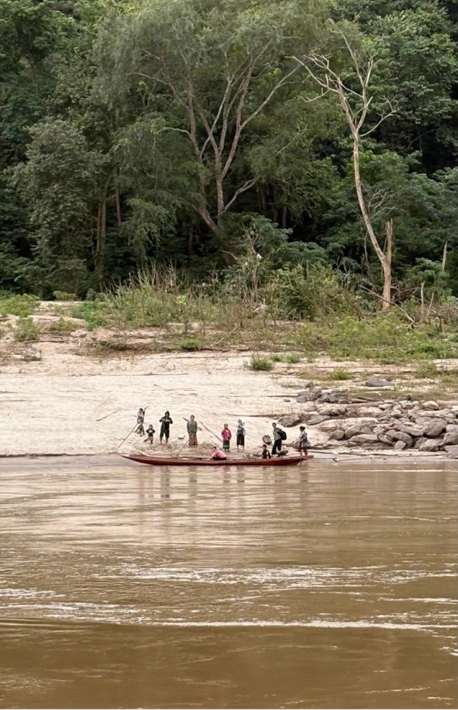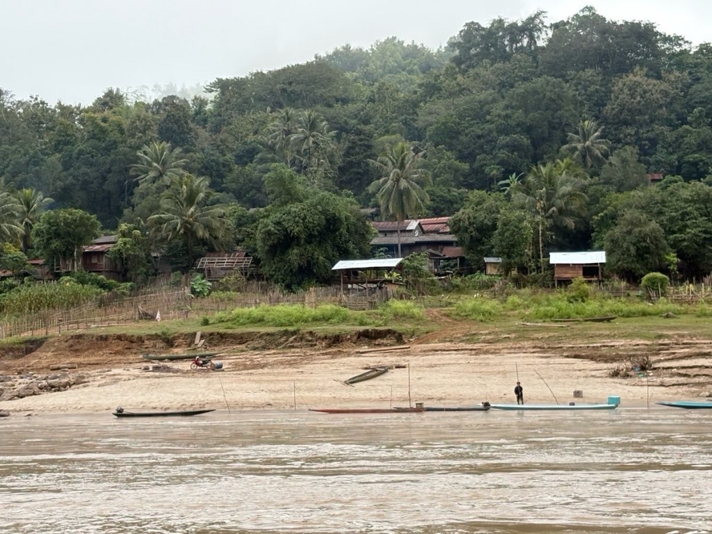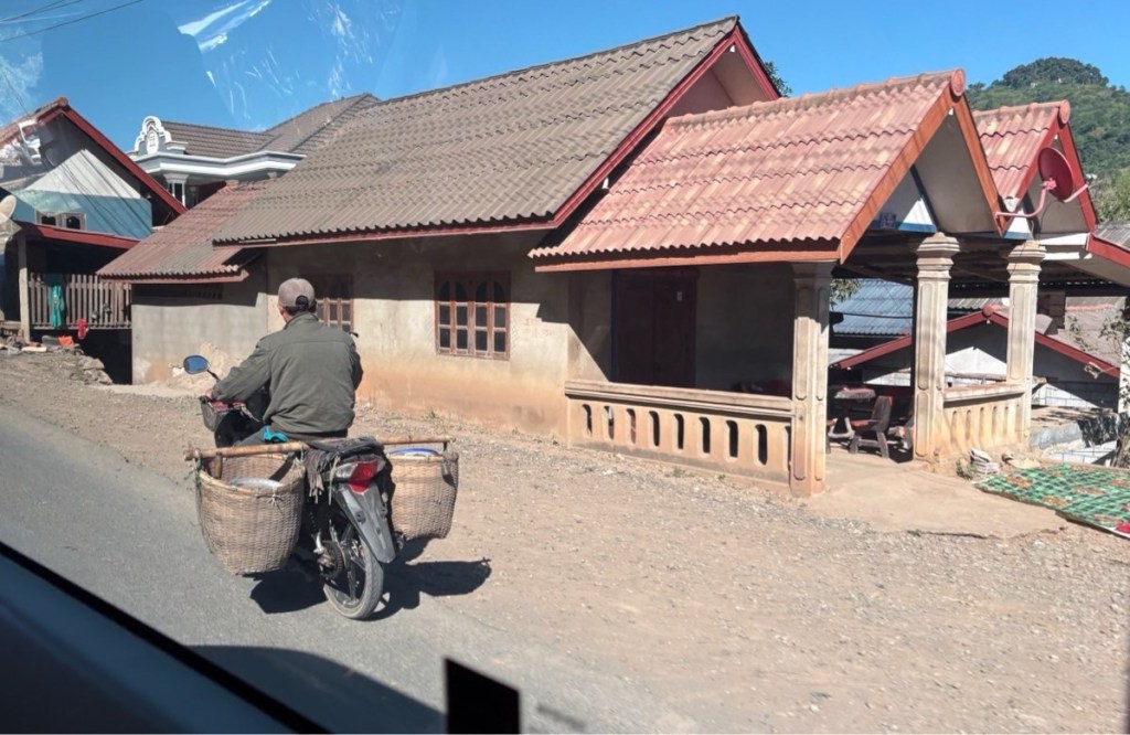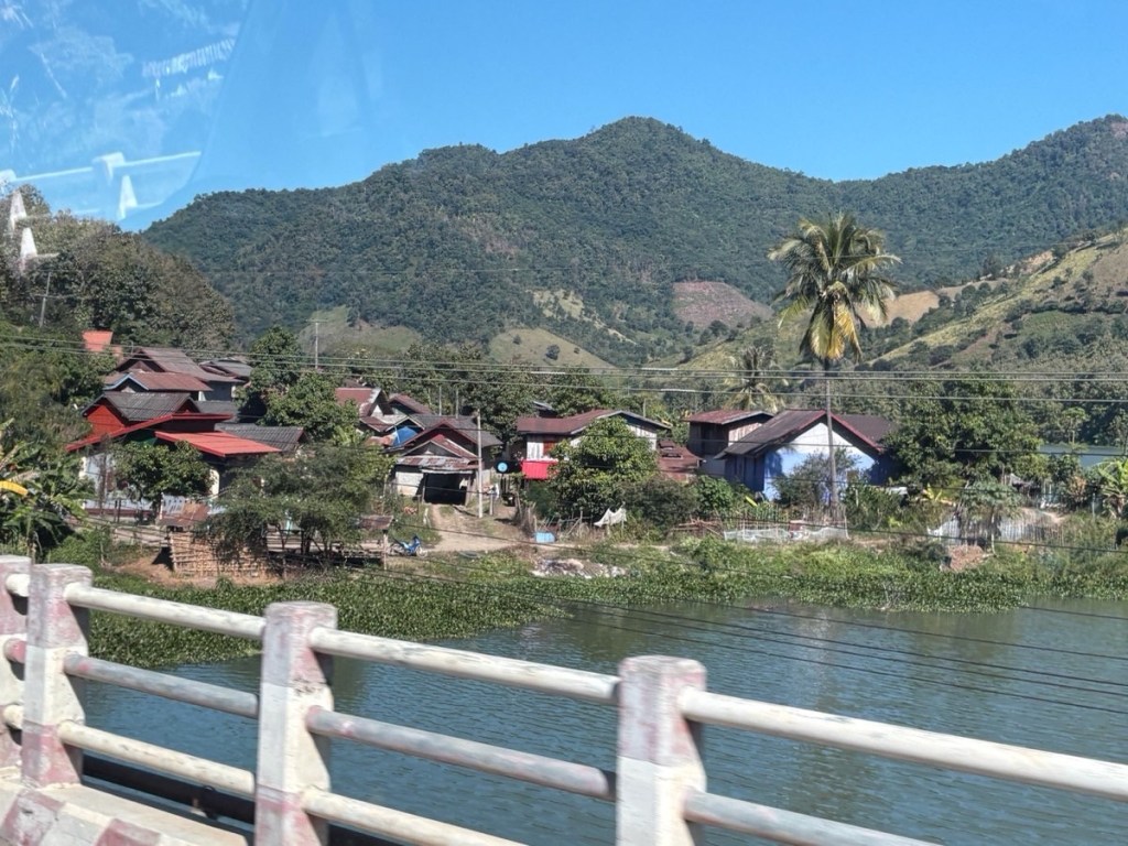 We docked at 12:45, then ensued an unpleasant 3.5h drive on a potholed “National Road”. The Chinese border is only a few hours away so Chinese trucks laden with goods 2x heavier than the permitted weight trundle up & down this road, tearing it up. We were lucky with our time, in the rain it could take 5 hours!