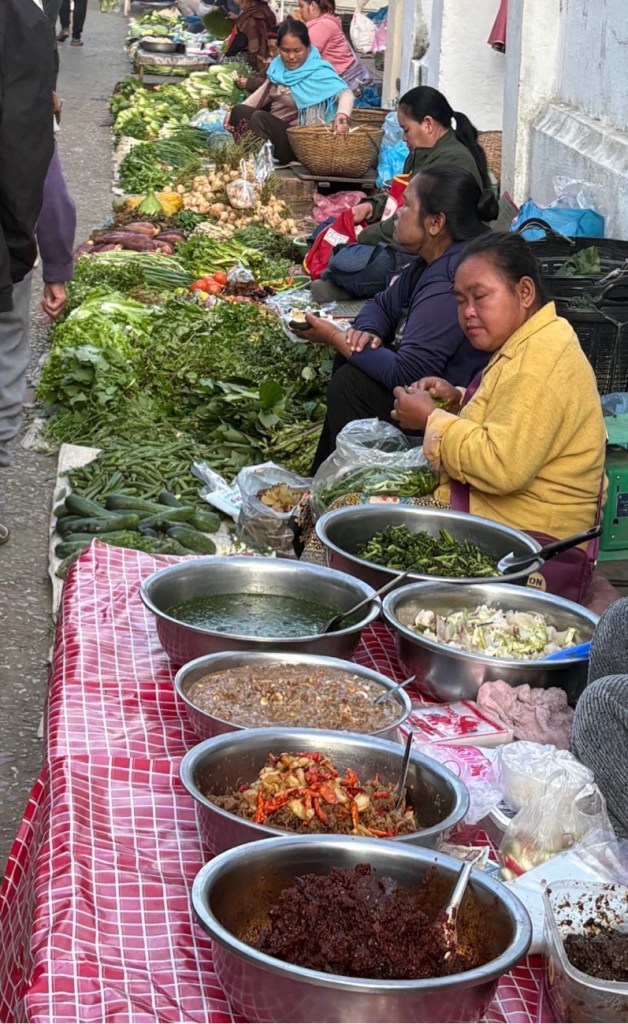 I took an early morning walk at 7am and the cool mist was already lifting. I walked around the peninsula that is this end of the Old Town until I saw stairs that led up to the temple on Mt Phousi. I just walked up & over for some exercise, then strolled through the morning market on my way back to my hotel for breakfast.