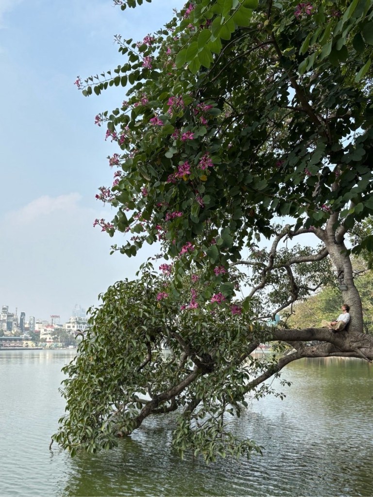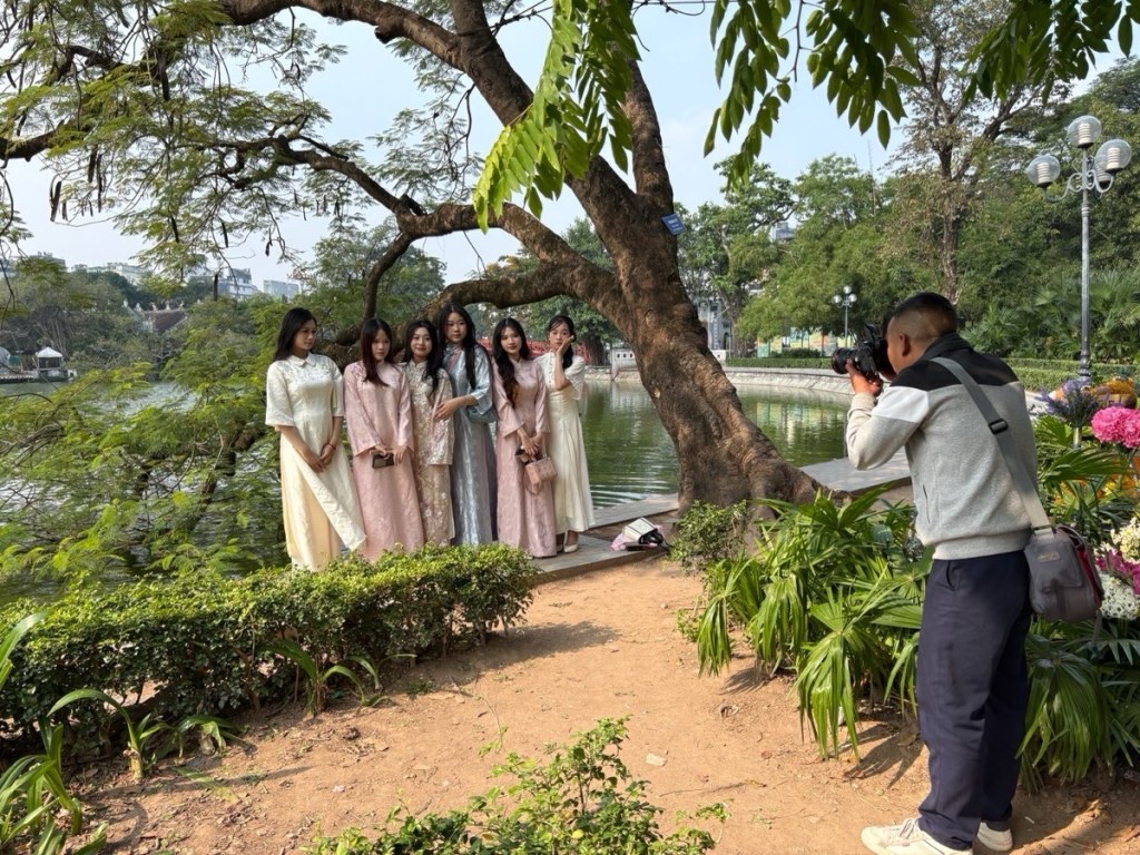 I finished with a walk around Hoàn Kiém lake. So many young ladies with photogs! I asked one why and why all in pink but this was beyond her grasp of English. Thanks to Google Translate I understood it was because Tet (New Year) was coming up and pink because it was a “gentle” color.
