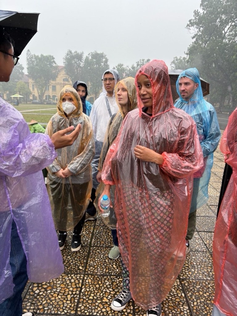 We’re getting pretty soggy now but there’s more to see. Next: Ho Chi Minh’s Mausoleum. We kinda thought we would actually see the tomb but the closest we got was standing a football field away in the pouring rain. Apparently he’s displayed in an embalmed state for over 10,000 visitors a day.