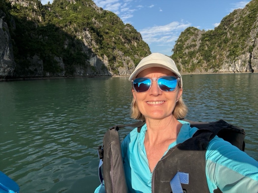It was a 4 hour bus ride to the very beautiful, very busy Ha Long Bay, famous for its thousands of limestone islands and islets. At the halfway point we stopped at a rest area run by a disabled group. G Adventures ethos consists of giving back to the local communities wherever they travel, especially the disadvantaged such as women, and a first for me, disabled.