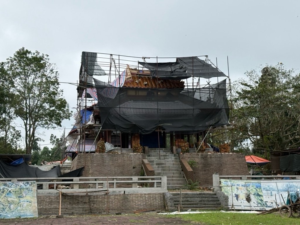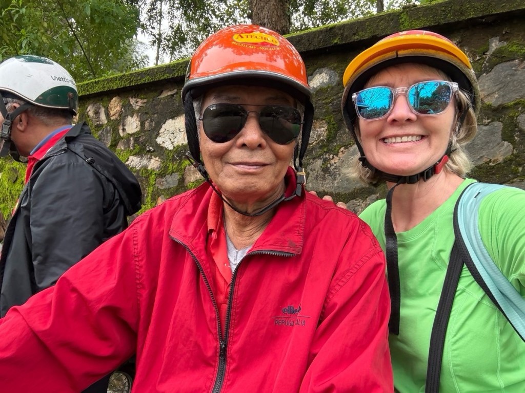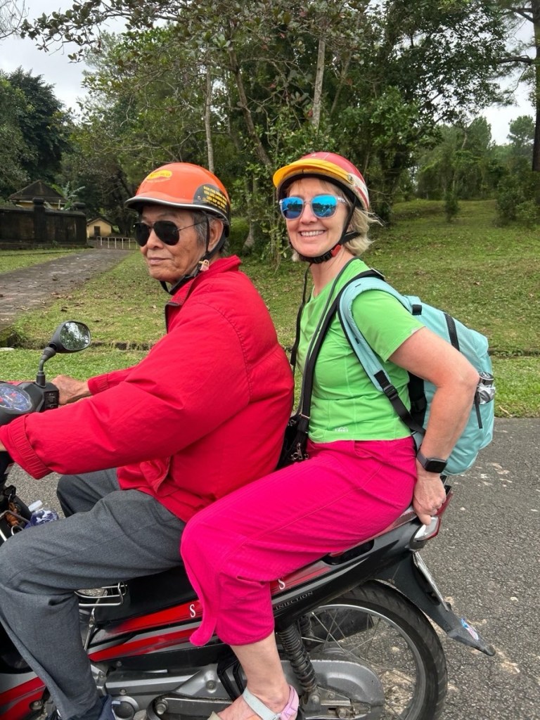 Our Optional Activity for the day started from here: motor scooters! 10 of us chose to participate and hopped on the back for the fast ride through back streets and countryside on the way to visit a Royal Tomb. Completely covered in scaffolding and being rebuilt it was a bit of a letdown; we then checked out the temple next door.
