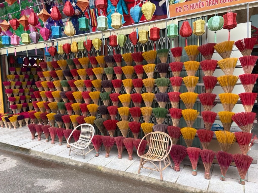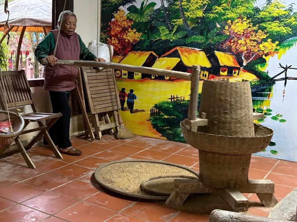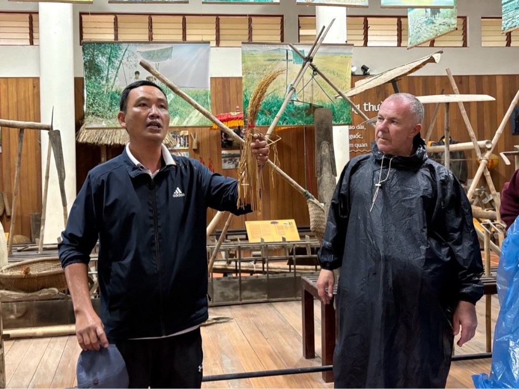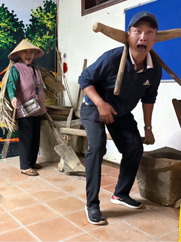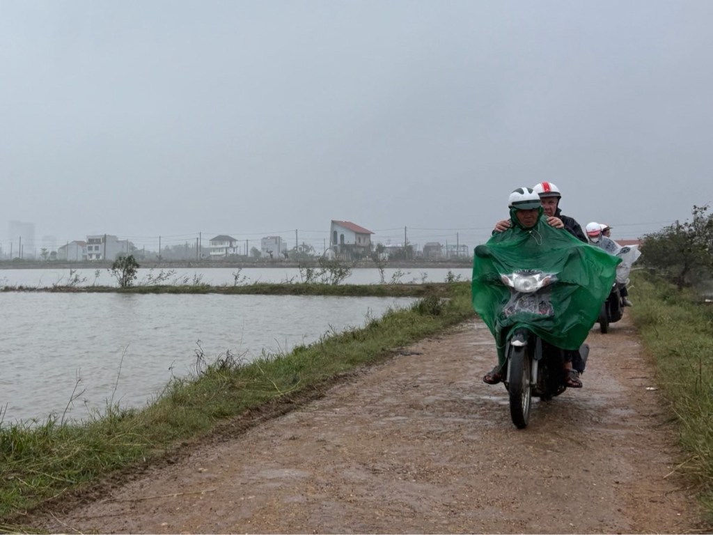We had a short stop to check out some leftover war bunkers, then an incense making village, before driving 30 minutes in the now rain out through flooded rice paddies to a old village to learn all about rice.